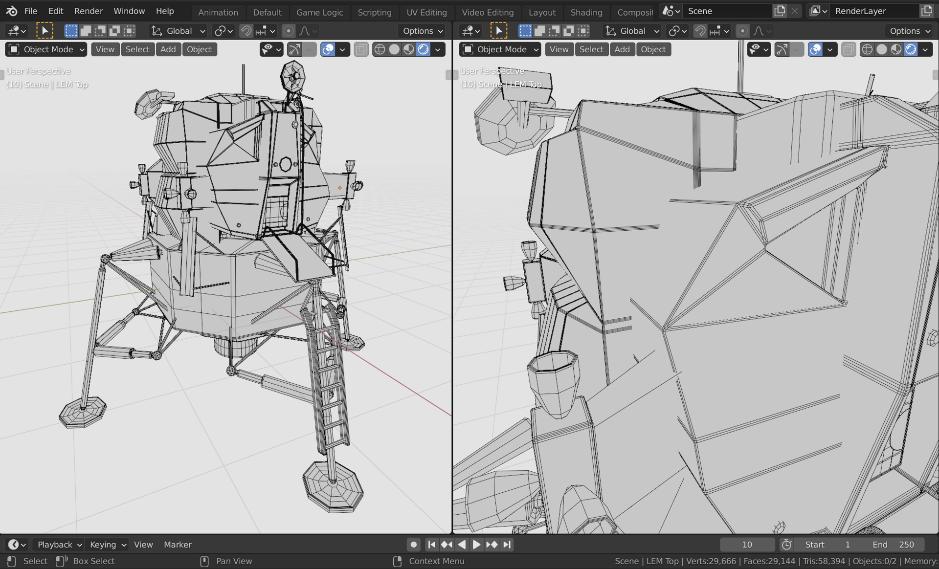 A realistic 3d recreation of the Apollo 11 Lunar Module landing, in 1969.