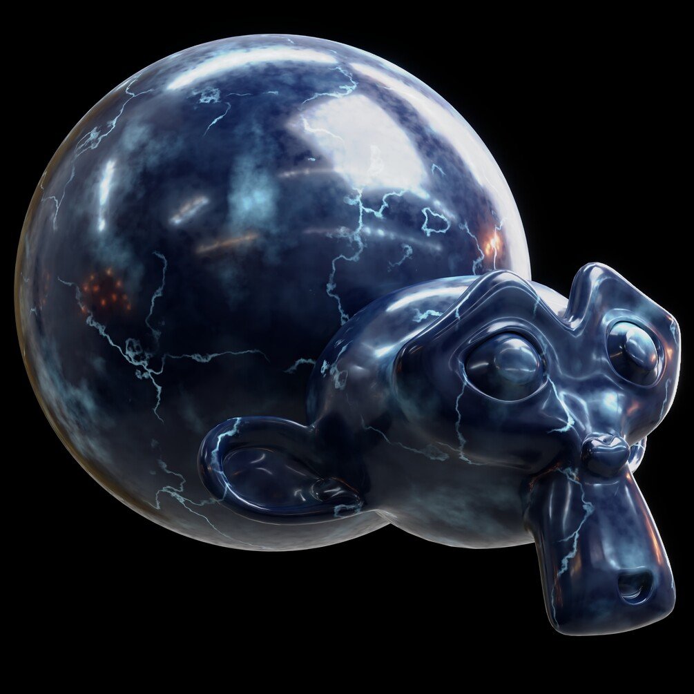 Procedural Blue Marble Material, created with Blender's Procedural Nodes.