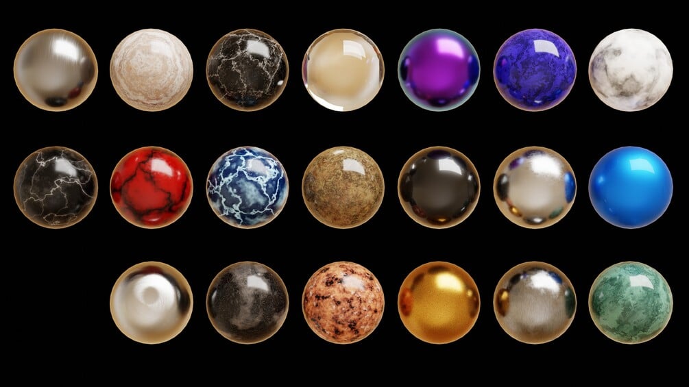 All of the materials are created procedurally. The marble materials have many different customizable procedural materials, like metal, marble, glass, and more. The wood material on the marble run pieces are also procedural. You can also add your own materials to the objects if you want to.