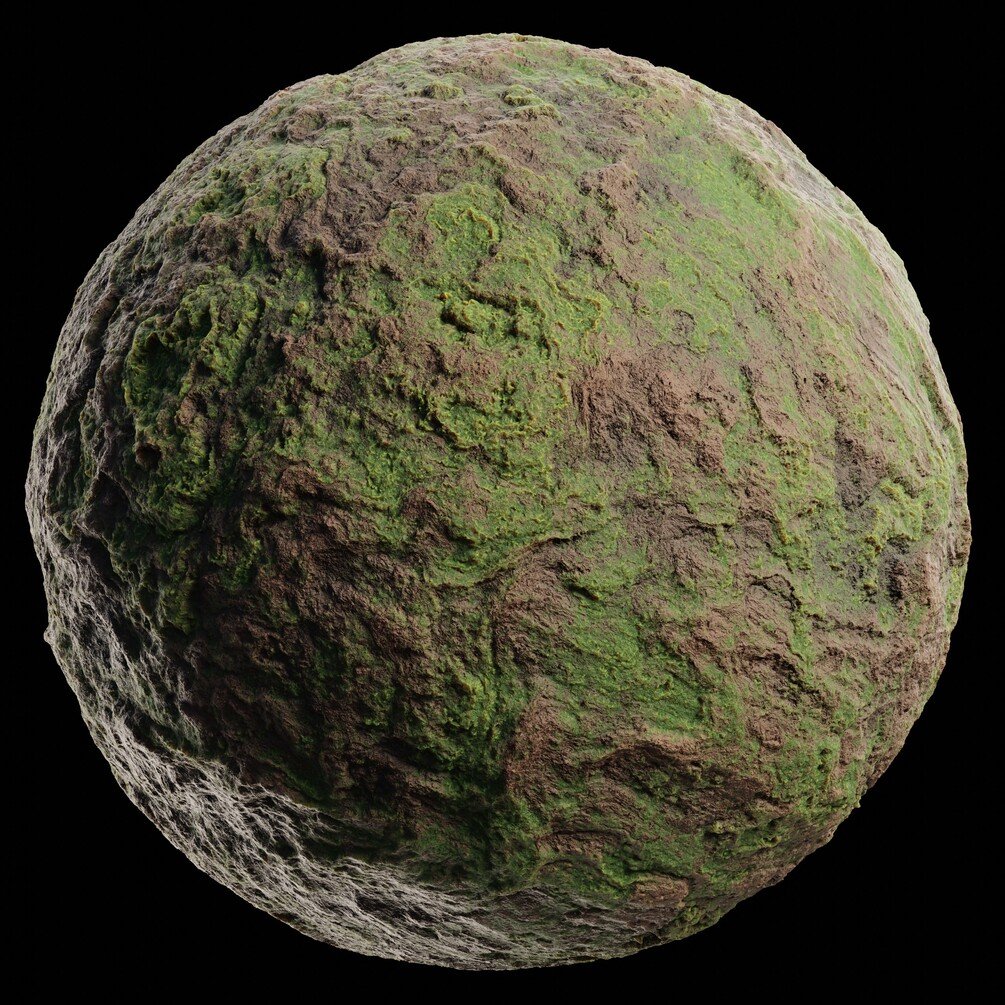 Procedural Mossy Dirt Material , created with Blender's Procedural Nodes.
