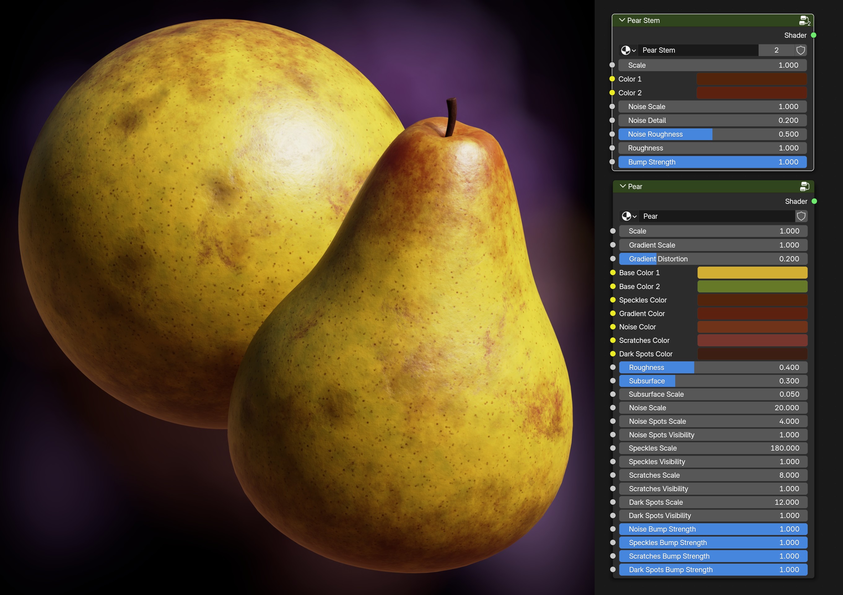 Procedural Pear Material, created with Blender's Procedural Nodes. 🍐