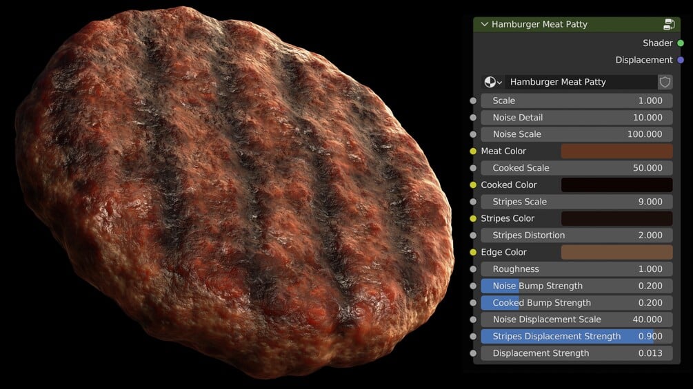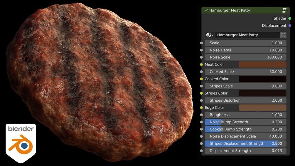 Procedural Hamburger Meat Patty Material, created with Blender's Procedural Nodes. 🍔