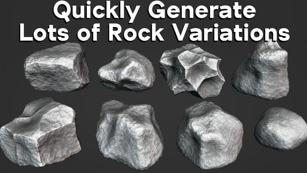 To generate lots of different rocks, just duplicate the rock object, and then change any of the geometry node modifier values. You can also go into edit mode, and edit the geometry, to change the size and shape of the rock.