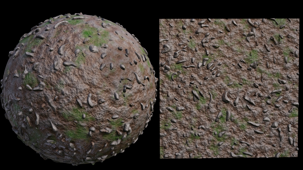 Procedural Rocky Ground Material, created with Blender's Procedural Nodes.