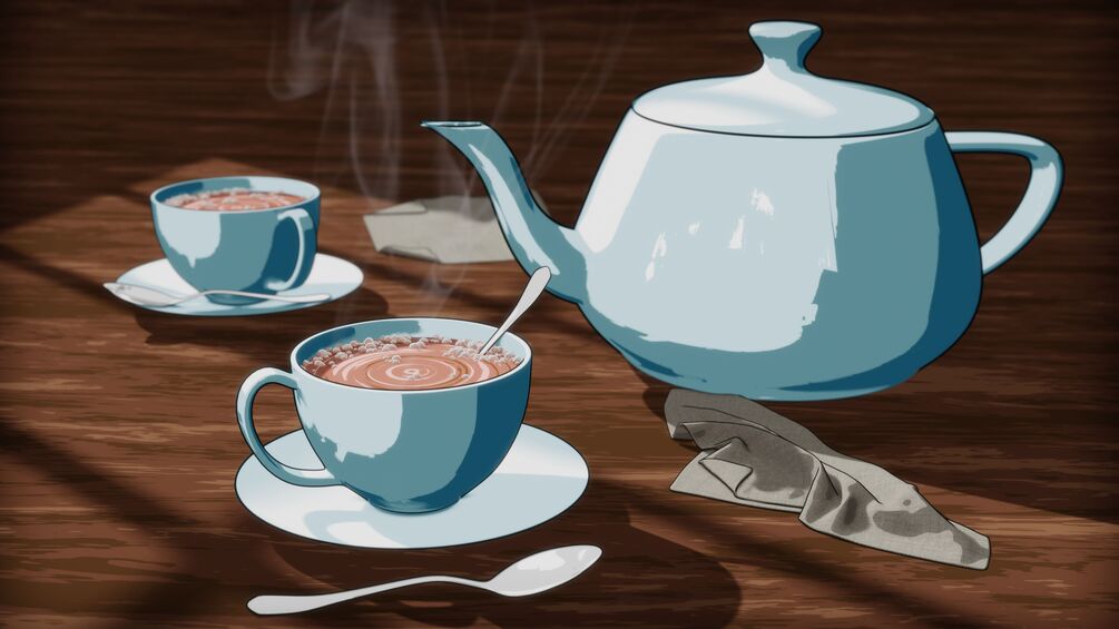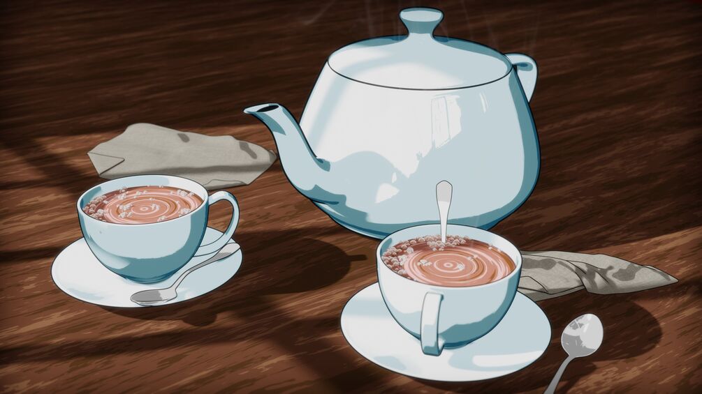 Toon Style Tea Scene, created with Blender. The scene is rendered with Blender Eevee. ☕